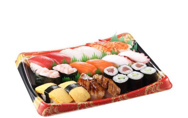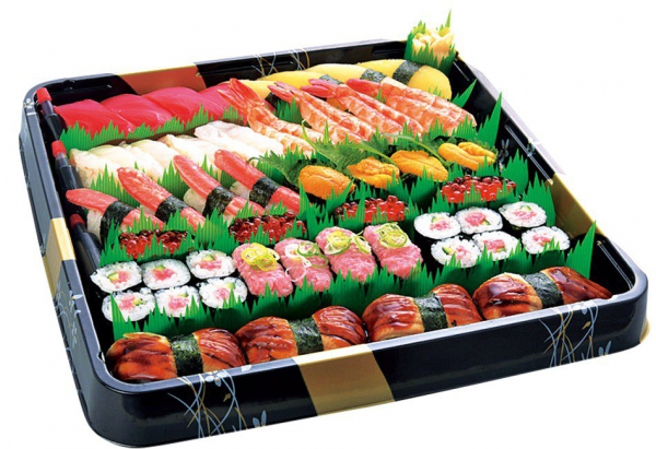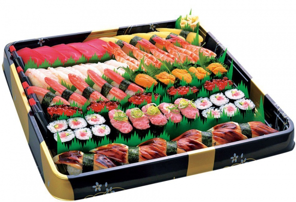 マグロ、イカ、エビ、サーモン、タコ、アナゴ、玉子、甘エビ軍カン、鉄火巻、かっぱ巻
