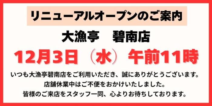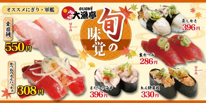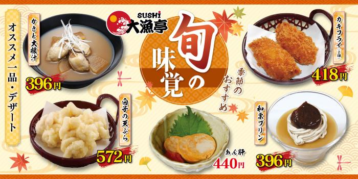 大漁亭 西尾店/岡崎南店/岡崎北店にて、期間限定で、季節を感じる 旬の味覚をお楽しみください。