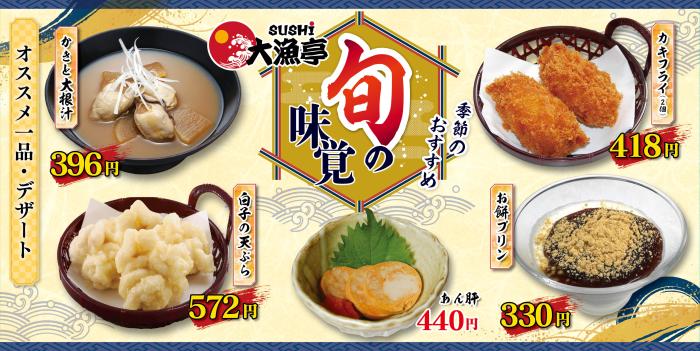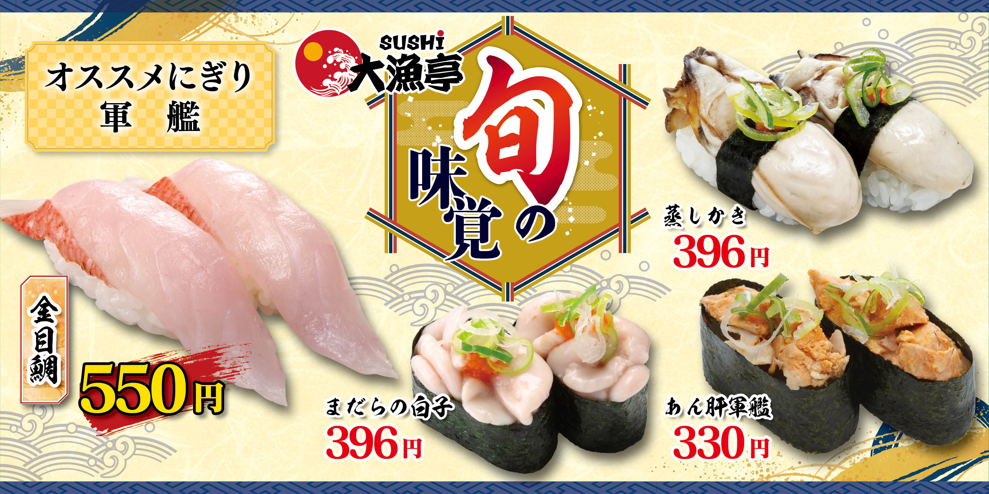 大漁亭 西尾店/岡崎南店/岡崎北店にて、期間限定で、季節を感じる 旬の味覚をお楽しみください。